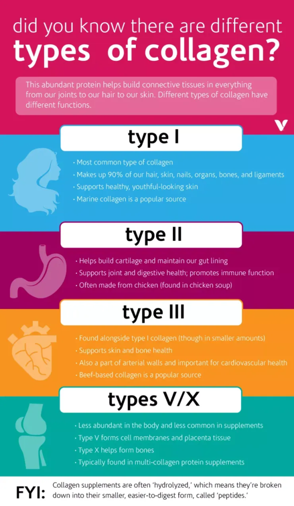 Di pasaran, ada pelbagai jenis collagen yang diperbuat daripada sumber-sumber;